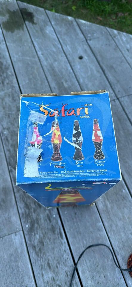 The series was in development as early as 1999, as shown by the use of the pre-2000 Lava Lite logo and unique product photos featured on the packaging. Unlike later models that used generic packaging, each Safari lamp had its own box with tailored artwork.