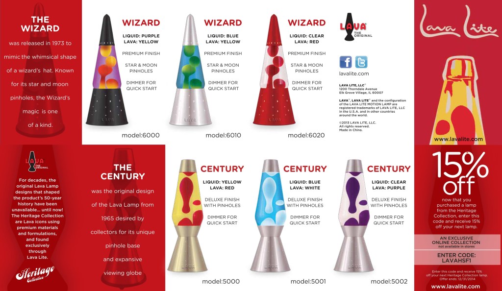 CHICAGO, IL – In 2015, the ubiquitous 1960’s pop culture icon celebrates its 50th Anniversary! This year marks a half-century of Lava® Lamps in the United States, which has been featured in countless TV shows, movies, magazines and more. In honor of its golden anniversary, the ever-popular “original shape of cool” has created a limited edition 50th collection for its fans!