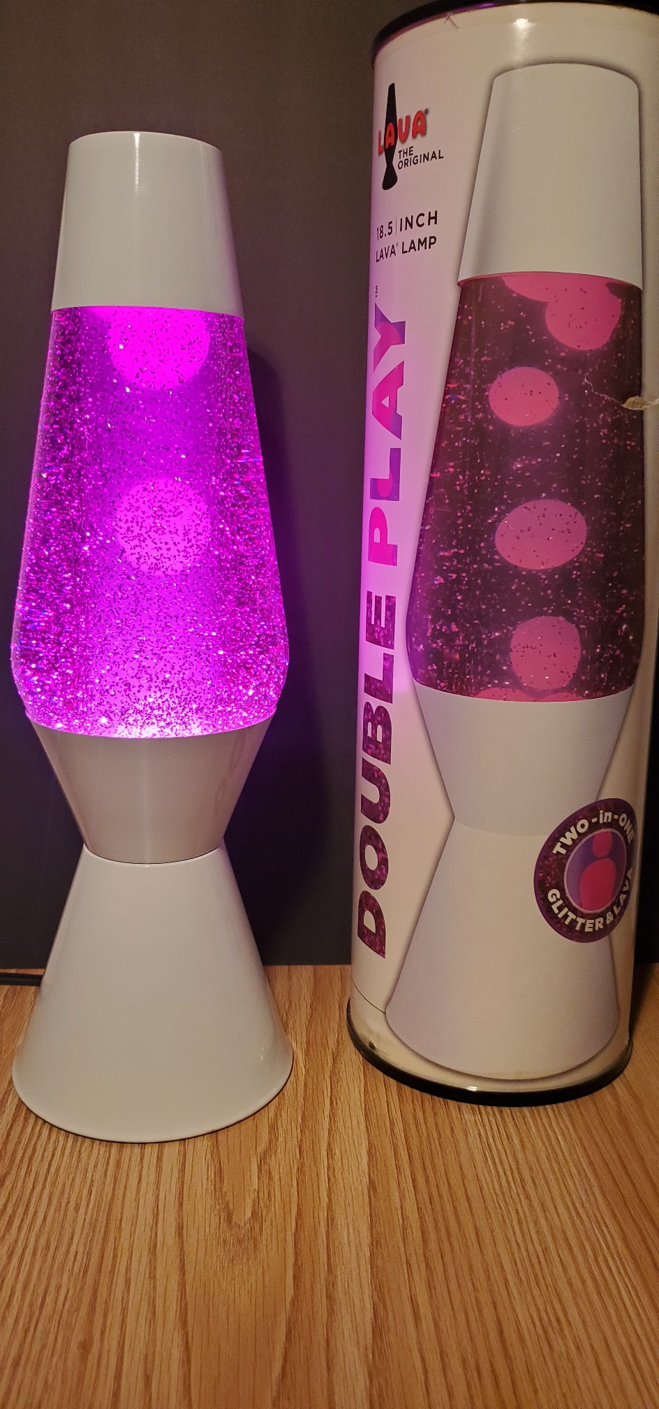 The Double Play is essentially a glitter Royale with a smaller tube shaped lava lamp inside the Royale globe. Like the Royale it was not available for very long.