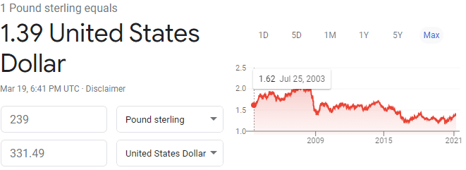 Here is where things get painful. £231 may not seem like a lot, but the exchange rate has historically not been in our favor. That means this order is costing me $331. This does not include international shipping.