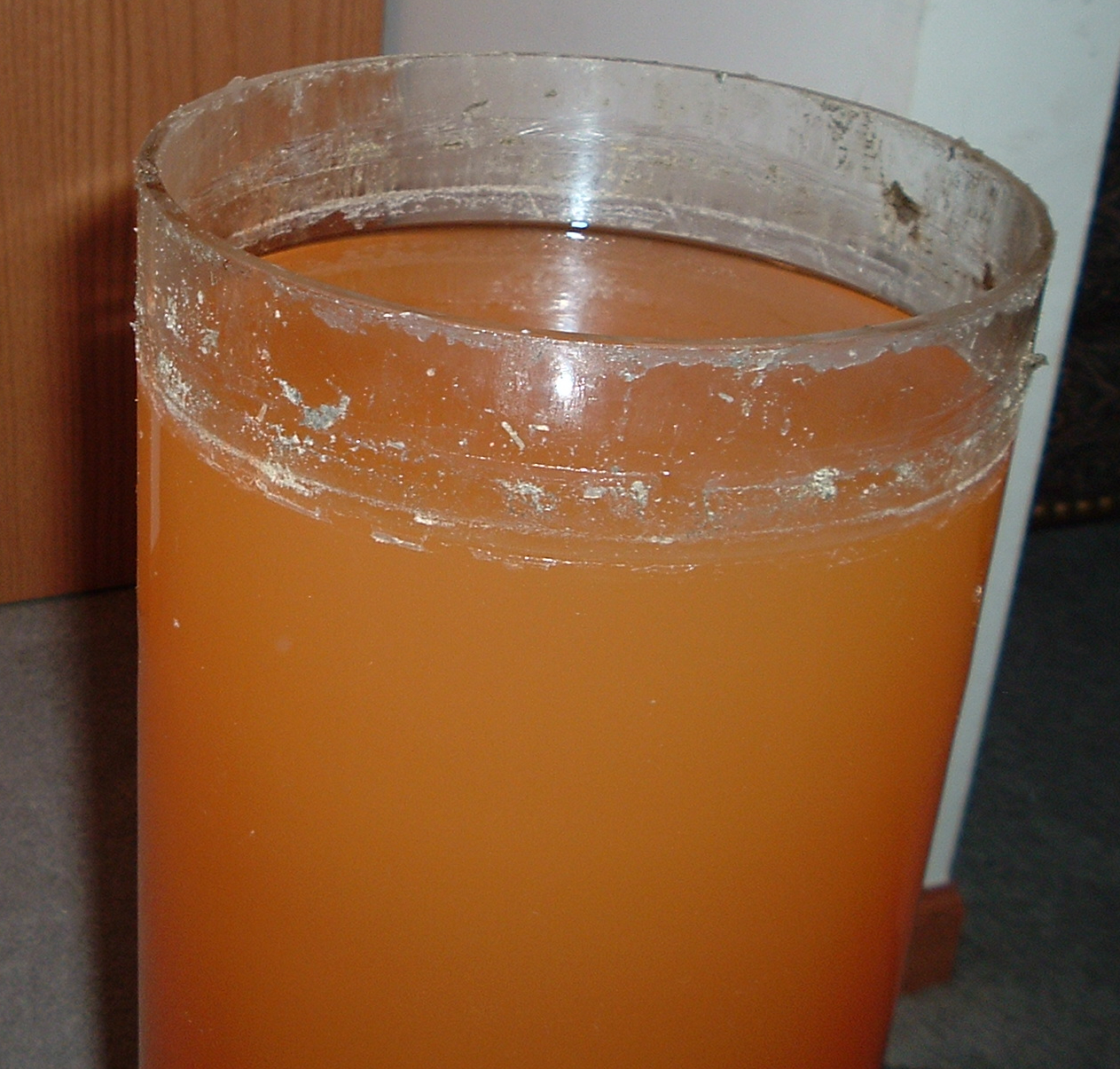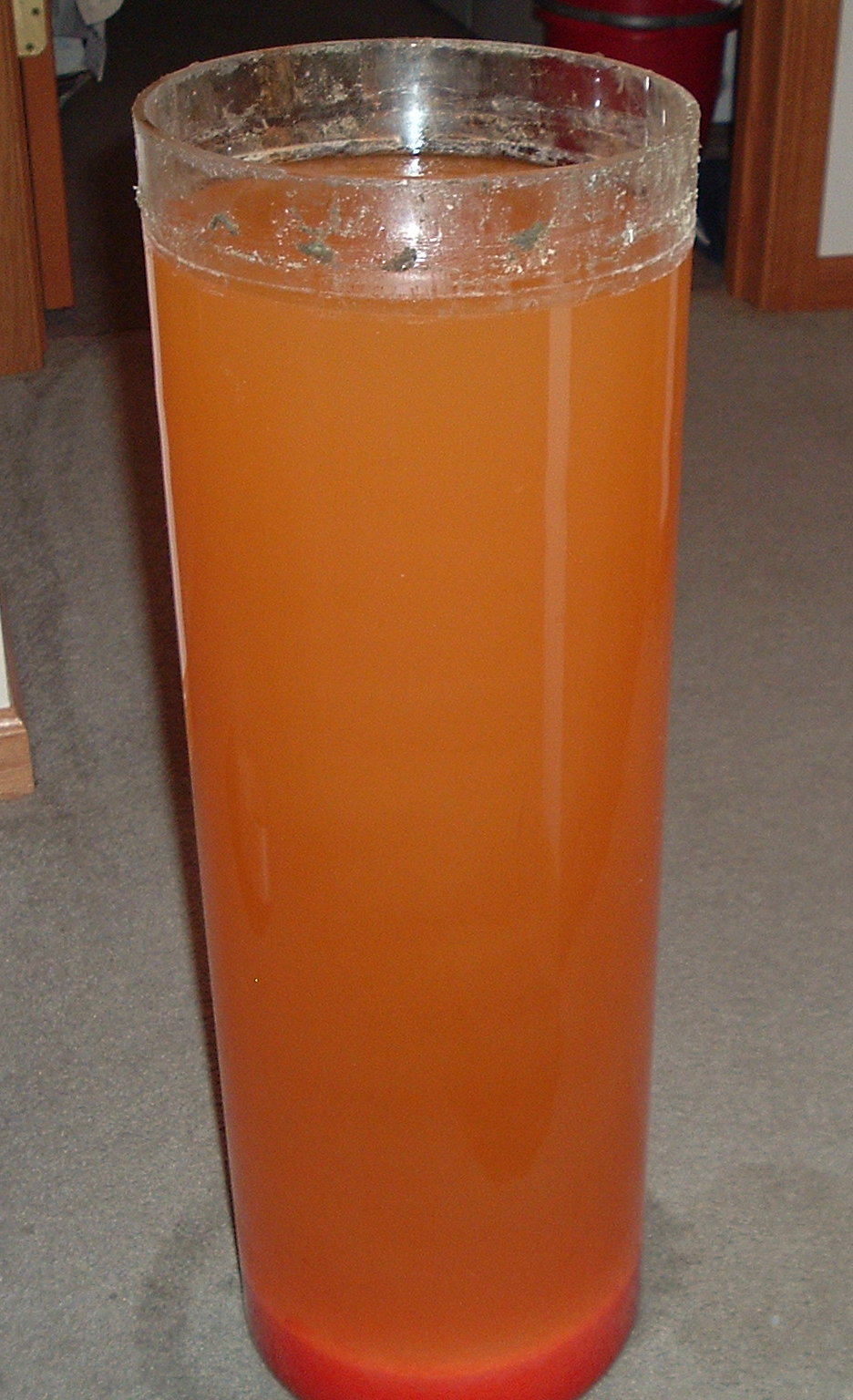 I used 60ml of SLES and 40ml of PEG 300. You can see the before and after below. Cycling it on and off for months didn’t make any difference, but after adding SLES and PEG 300 it only took a few days to clear. Afterwards I noticed the lamp became less and less active. All of the particulate seems to have absorbed into the wax making it less dense. I had to add another 290ml of PEG 300 to make it active again. This changed the density of the master fluid from 1.053 to 1.054. After a while the master formula began to cloud up while cold. A filtering with a 0.2 micron ceramic filter cleaned that up.