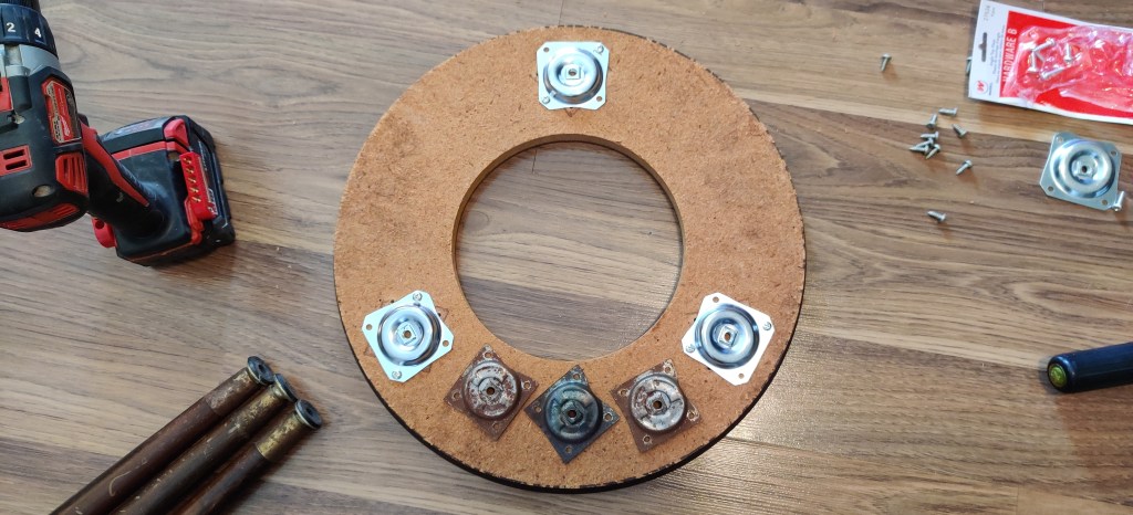 If the legs on the Imperial are wobbly and cannot be steadied with tightening the mounting plates can be repaired. The mounting plates are still commonly sold in hardware stores and online as “14 degree angled leg mounting plates”. They often come with extra screws, anchors, and threaded rods. Only the mounting plates themselves and the screws are needed.
